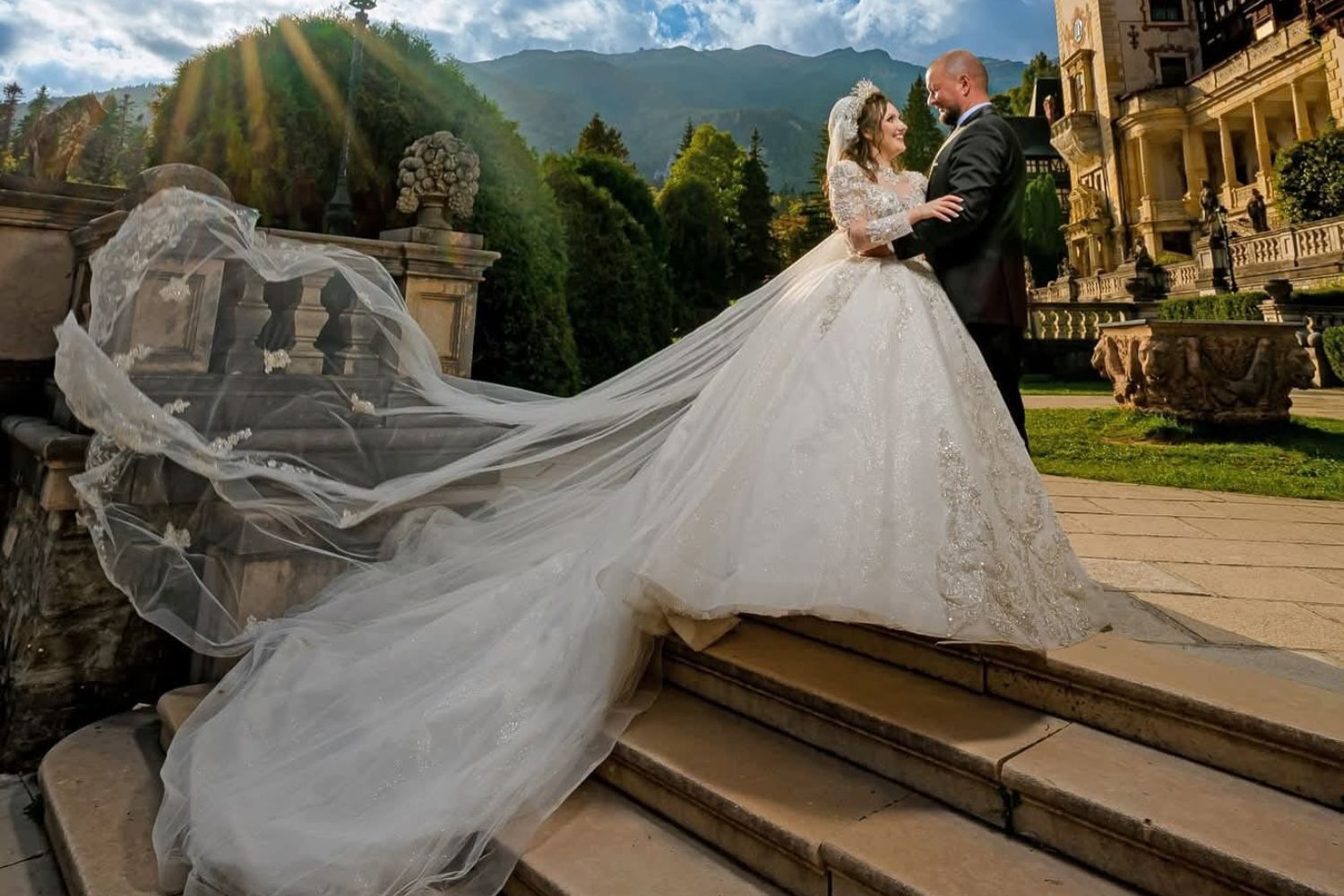 Detaliile masive, trenă catedrală și voal lung sunt elemente care îți definesc stilul.
