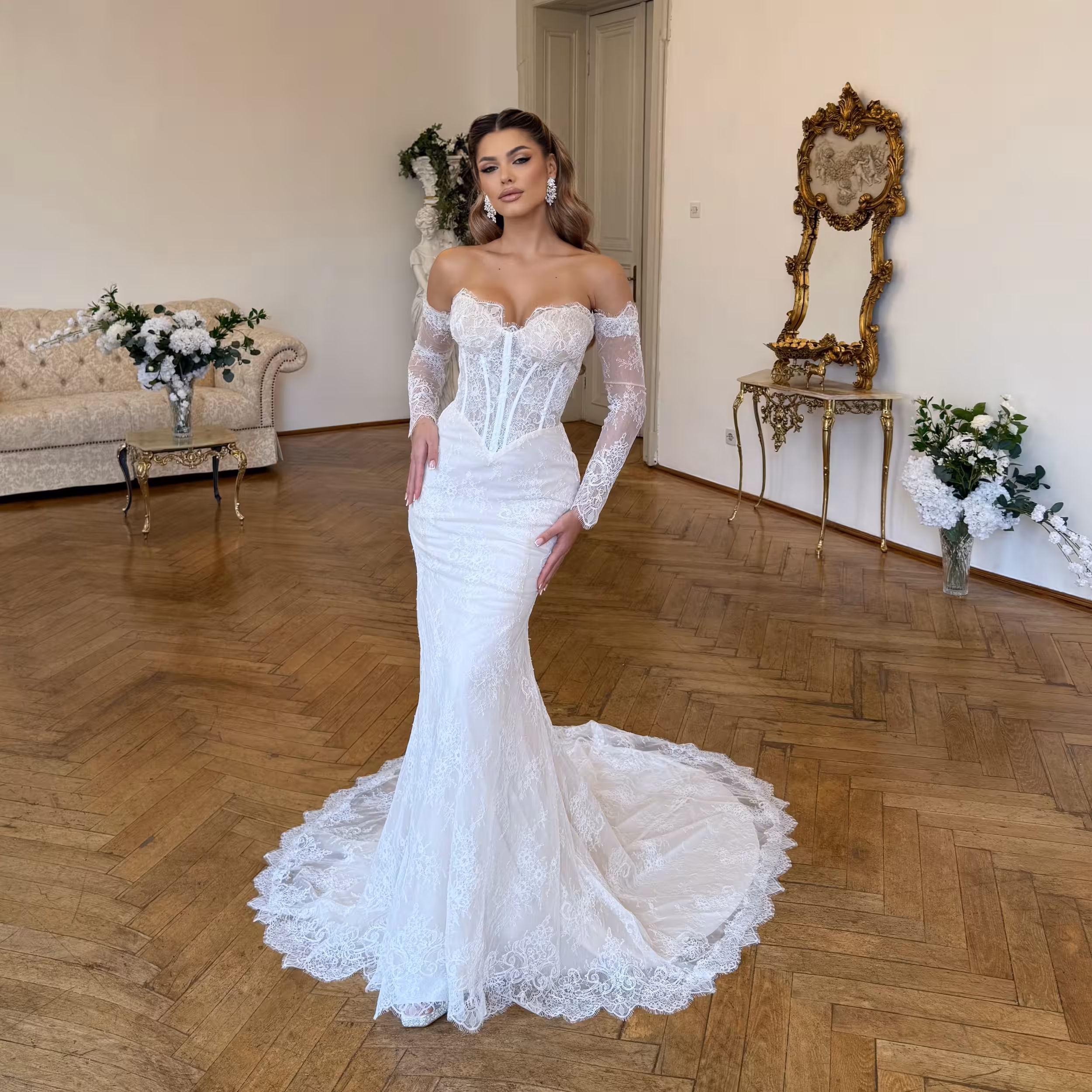 Rochia de mireasă Maeva este o alegere care combină senzualitatea liniei sirenă cu romantismul dantelei Chantilly. Este o rochie elegantă, cu o croială ce urmează linia corpului, accentuând grațios silueta și aducând un aer sofisticat și feminin.